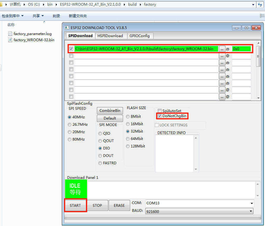 To download one combined factory bin to address 0, select “DoNotChgBin” to use the default configuration of the factory bin.