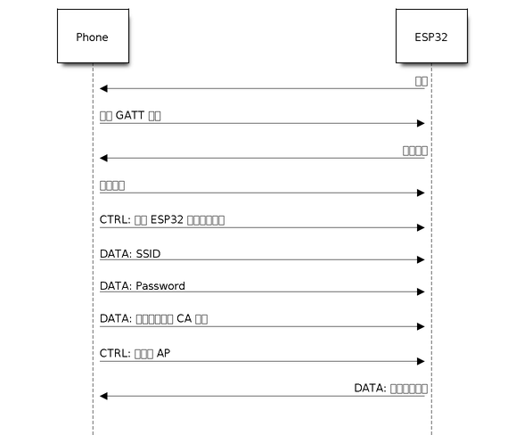 - GATT 连接建立成功后,手机向 ESP32 发送“协商过程”数据帧(详情见 BluFi 传输格式 )。